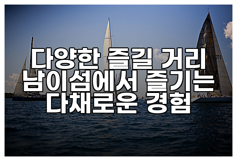 남이섬에서는 아름다운 자연을 감상하는 것 외에도 다양한 즐길 거리가 있어요. 자전거를 대여하여 섬을 자유롭게 돌아다닐 수도 있고, 카페에서 향긋한 커피를 마시며 여유로운 시간을 보낼 수도 있어요. 또한, 다양한 기념품샵에서 쇼핑을 즐기는 것도 좋고요.